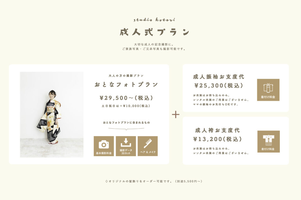 おとなフォトプラン 29,500円(土日祝は+10,000円)