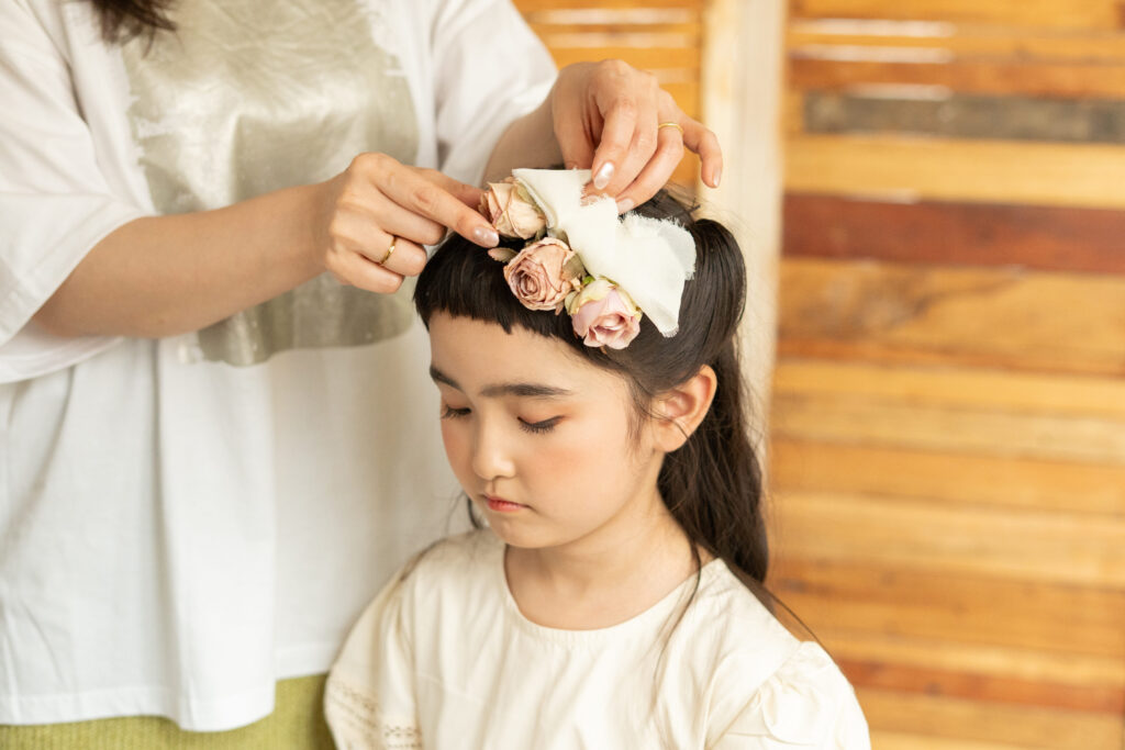 プラン内に1名様分のヘアメイクがついています。(髪飾りレンタル含む)
