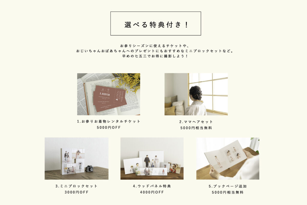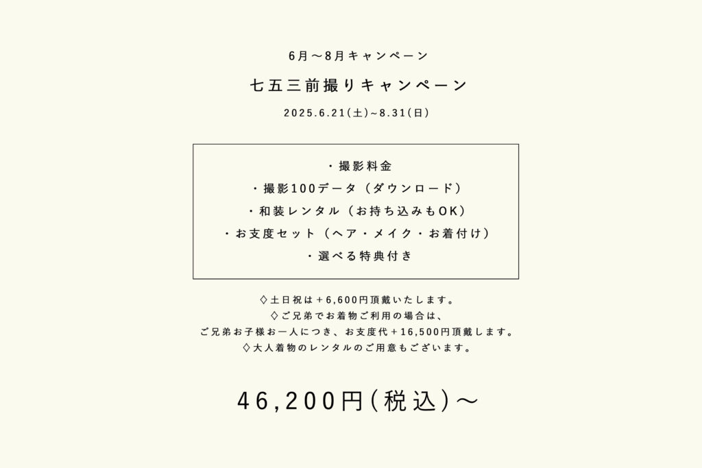 「6月〜8月 選べる特典付き!七五三前撮りキャンペーン」