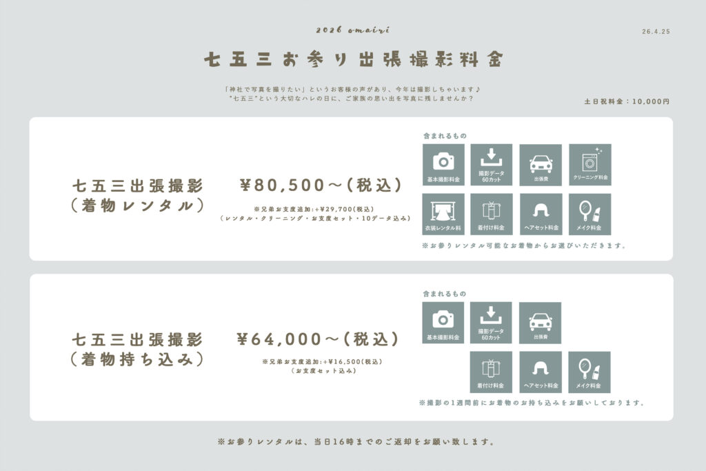 ※初穂料(祈願料) は撮影料とは別途お客様ご負担となります。