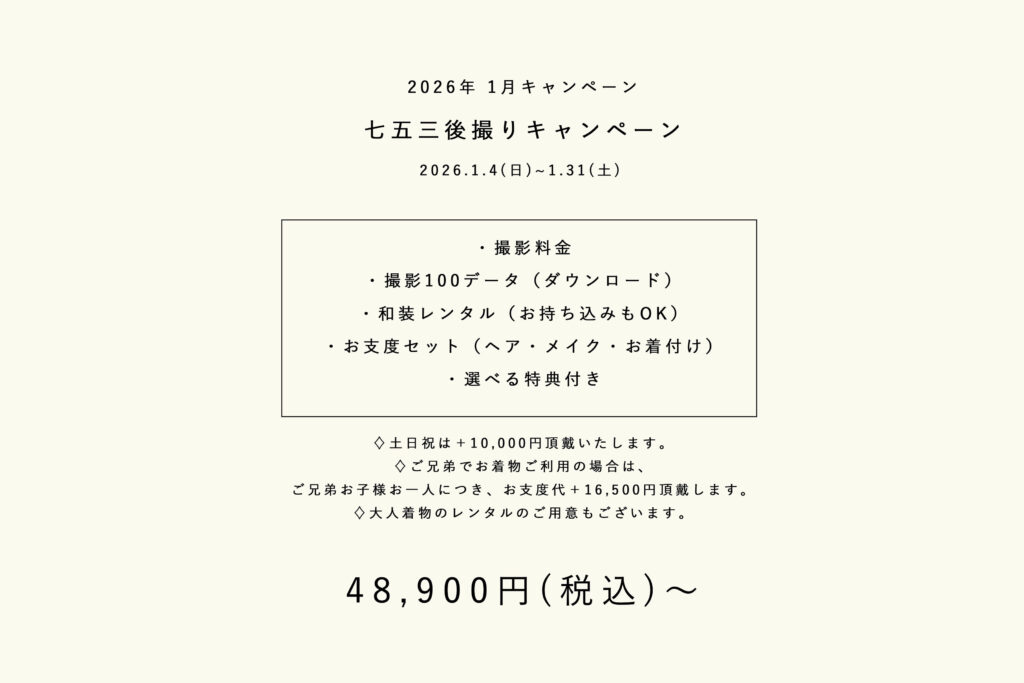 2026年1月 選べる特典付き!七五三後撮りキャンペーン
