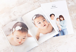 ・基本撮影料金・80データ(ダウンロード)・衣装レンタル(1着)・お子様のヘアセット・ペーパーフォトブック